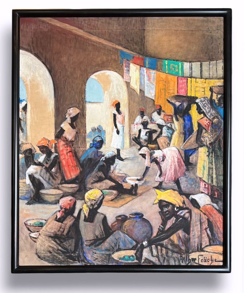 Sculpté bambou noir usé sur assiette brique (estampe japonaise)