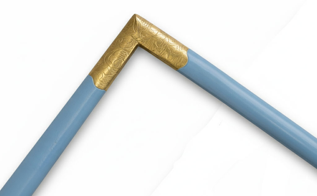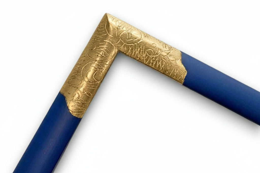 Bleu pierre angle gravé or fin