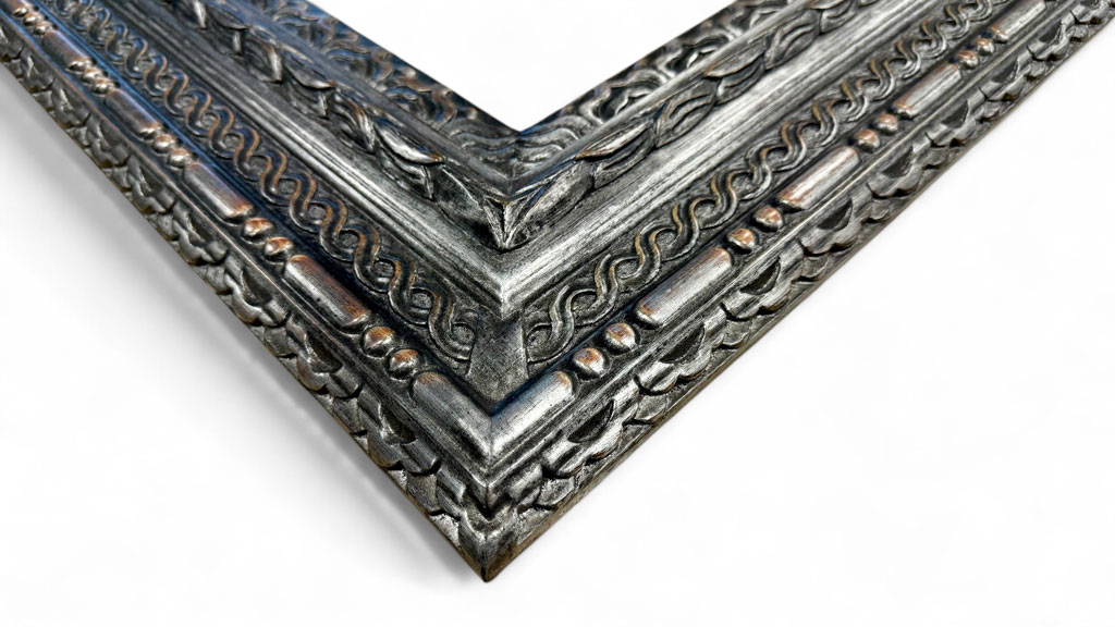 Επικάλυψη μέ χαλκό ή λεπτό χρυσό, λευκόχρυσο ή πραγματικό ασήμι, σκάλισμα στό ξύλο, πλαίσια από δρύ